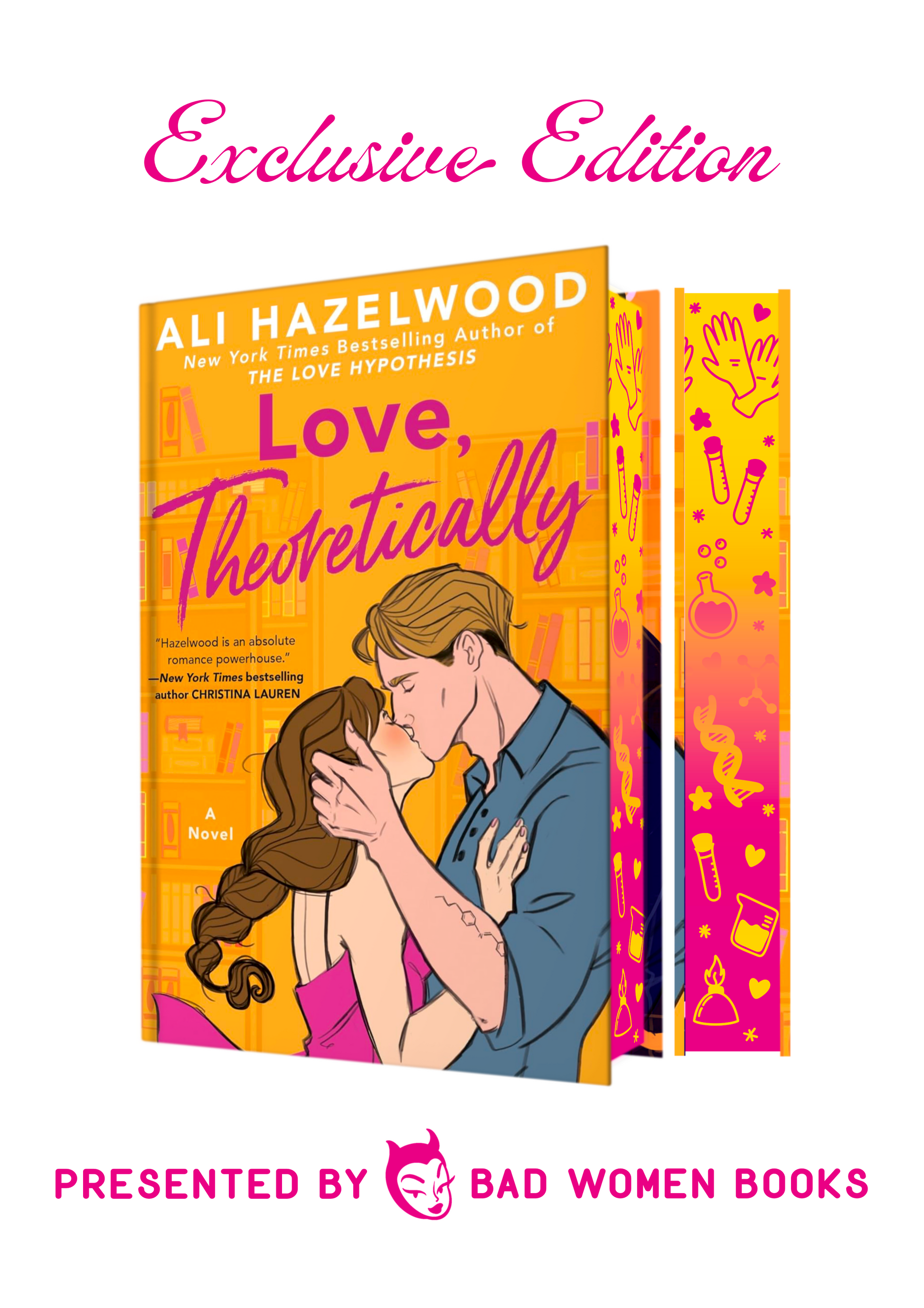 We’re so happy to present our Exclusive Edition of “Love, Theoretically” by Ali Hazelwood. This hardcover edition includes custom printed edges.