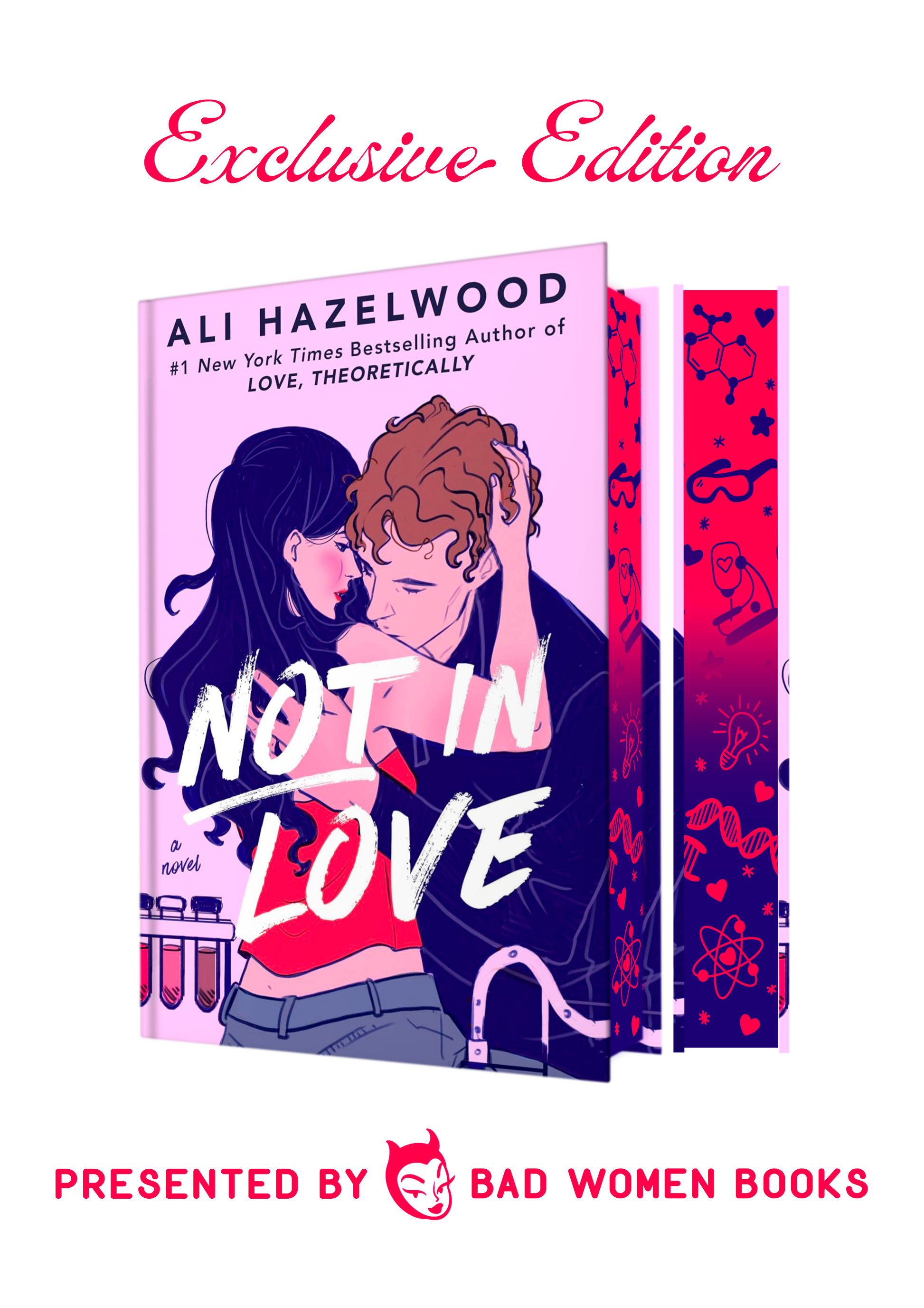 We’re so happy to present our Exclusive Edition of “Not in Love” by Ali Hazelwood. This hardcover edition includes custom printed edges.