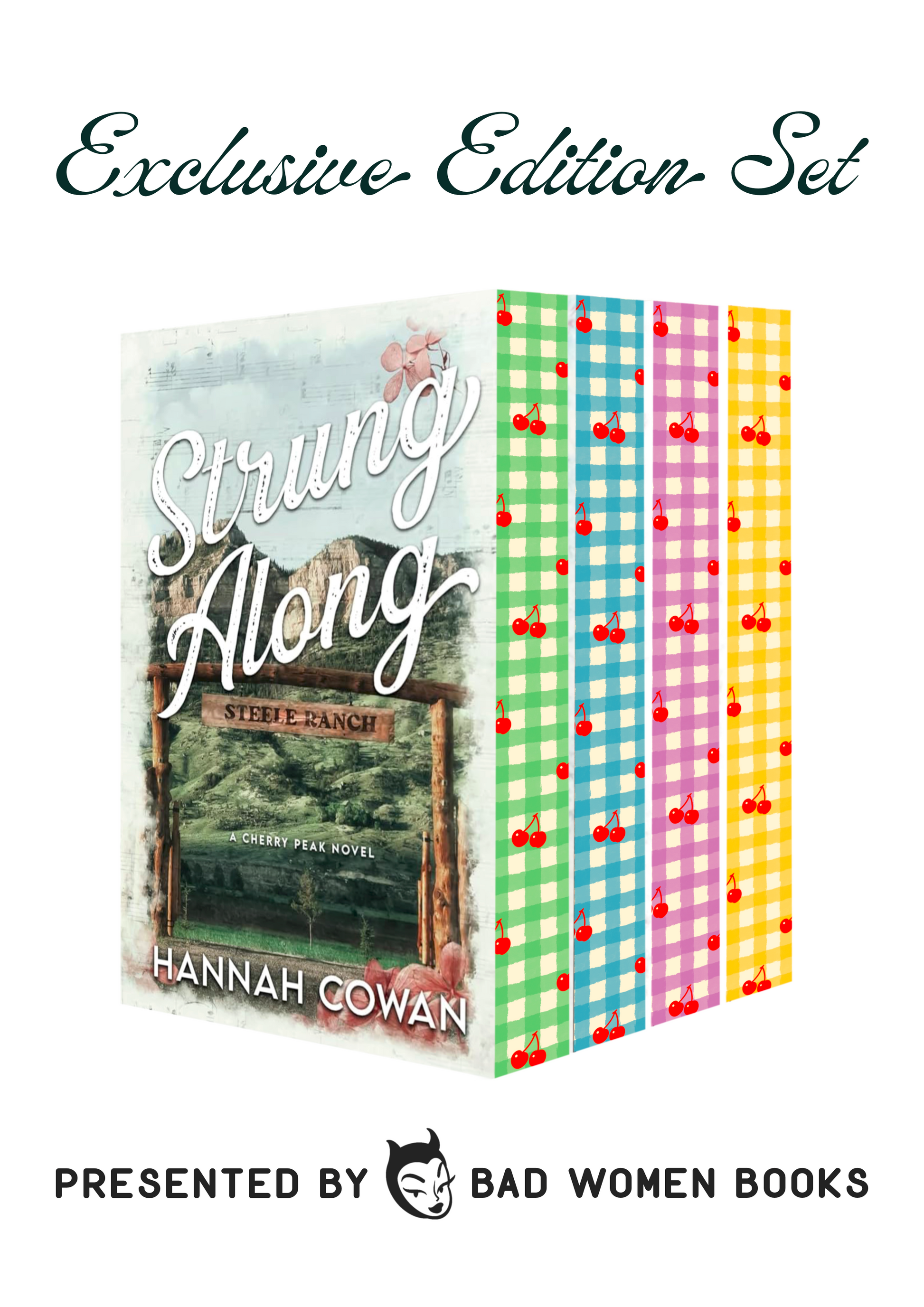 We’re so happy to present our Exclusive Edition Set of the Cherry Peak series by Hannah Cowan. The set includes "Strung Along," "Catching Sparks," "Chasing Home," and "Stealing Sunshine." These paperback editions come with custom printed edges and each one is hand-signed by the author.